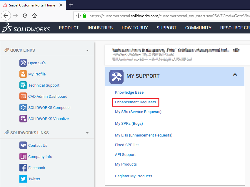 via the enhancement request system on the SOLIDWORKS Customer Portal. The requests