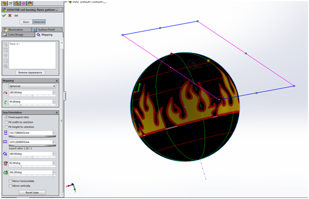 adjusting the size and angle of rotation in the mapping tab to achieve the