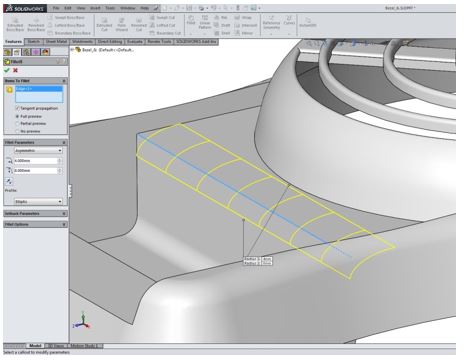 We now allow elliptical profile fillets with similar controls to the chamfer tool. These can be simple elliptical profiles or controlled with a conic rho value.