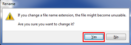 end of the file, click yes to the warning about renaming the file extension