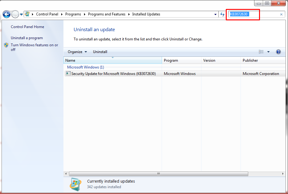 Search for KB3072630 (no spaces)
