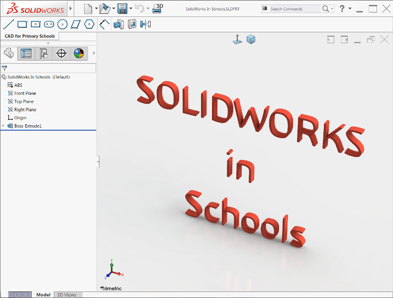 During the primary school years children are constantly developing their fine motor skills. Tasks such as hand writing and learning to play an instrument all help with this development and using CAD is another great opportunity to practice these skills. With this in mind one of first tasks before introducing SOLIDWORKS to the children is to simplify the user interface (UI). Out of the box the UI is too complex and contains lots of functionality that is not needed. The developers at SOLIDWORKS have built in lots of options and settings to customise the interface as you can see from the image below version 1 of the SOLIDWORKS in Schools user interface looks easy and simple to use...